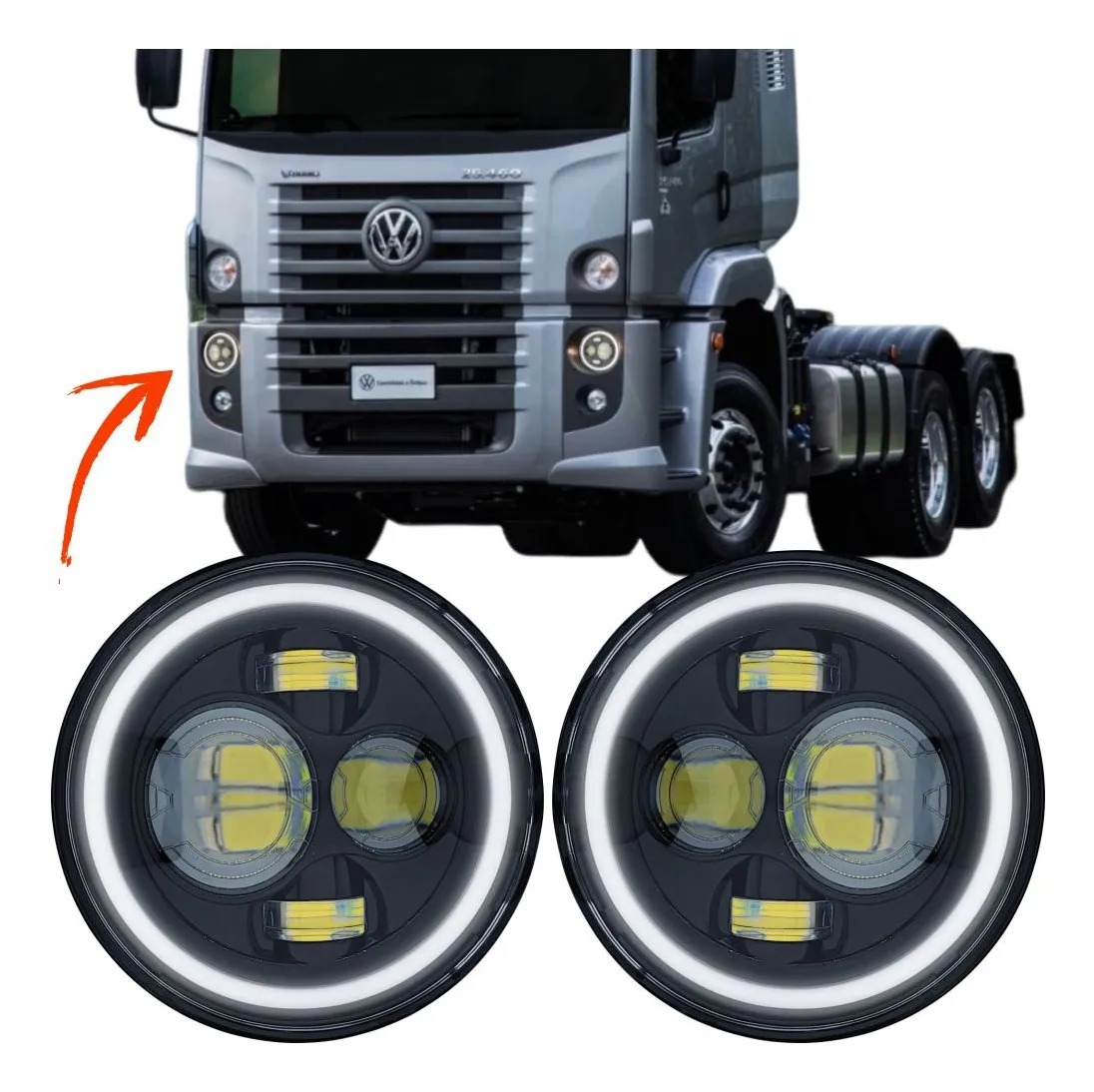 02 - Farol Angel Eyes DLR H4 Luz Alta e Baixa e Seta 7 Polegadas